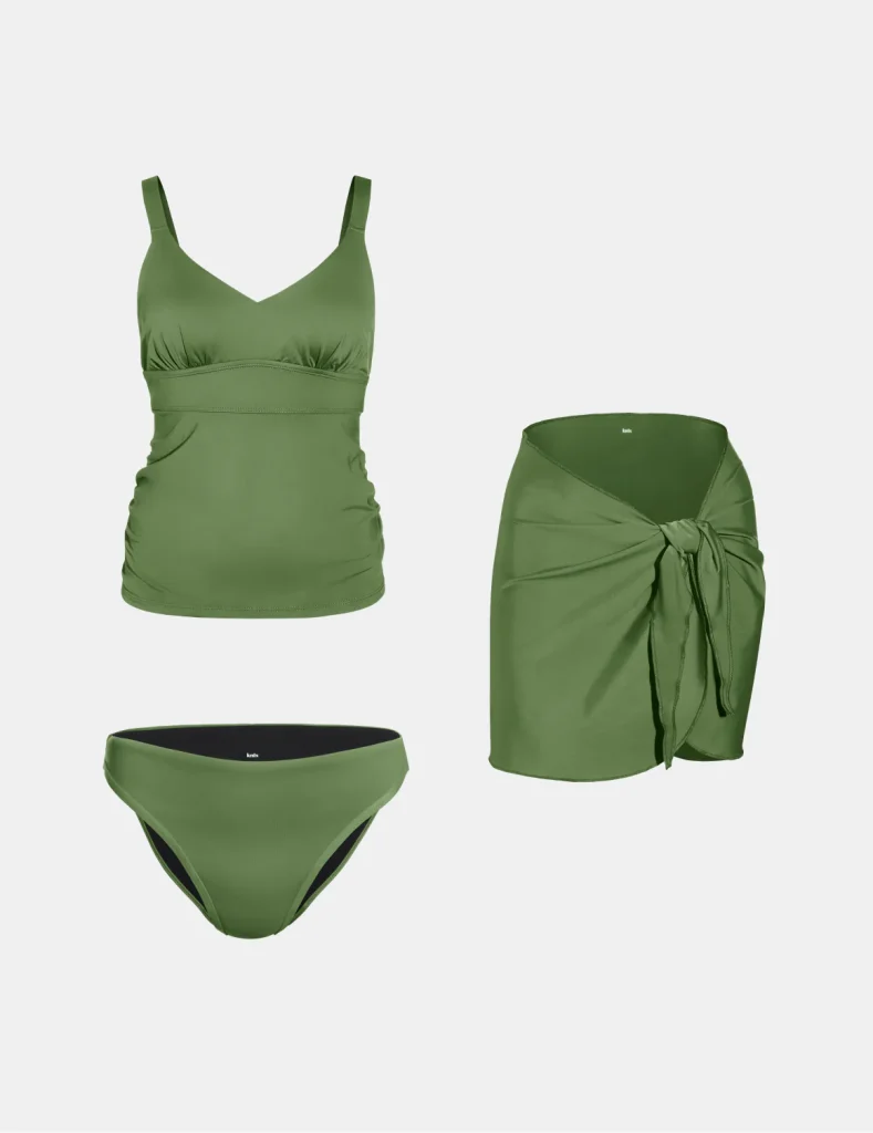 The Tankini Top, Leakproof Bikini Bottom and Sarong Set is a versatile and inclusive Swimwear ensemble that caters to various body types, offering a perfect balance of style and functionality. The tankini top provides additional coverage with adjustable straps for a secure fit, while the leakproof bikini bottom ensures confidence during water activities.