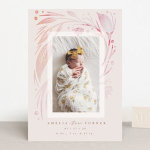 Minted’s Amelia Birth Announcement is a beautifully designed way to share the news of a new baby’s arrival. The delicate typography and soft, whimsical design make this announcement perfect for introducing your little one to the world. The customizable features allow you to add a baby’s photo, name, birth date, and other special details, creating a heartfelt and memorable announcement. This is a wonderful keepsake for new parents and can even be framed as a lasting piece of art to remember the joyous occasion.