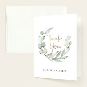 Show your gratitude with Minted’s Eucalypta Baby Shower Thank You Cards. These delicate, nature-inspired cards are the perfect way to thank friends and family for their love and gifts. Featuring soft floral designs and customizable messages, these thank-you cards make your appreciation feel extra special. Plus, they are printed on premium paper, ensuring that each card feels luxurious to the touch.